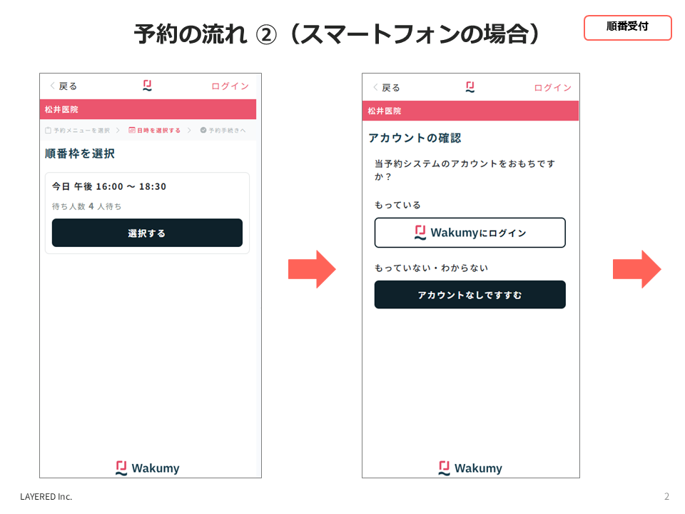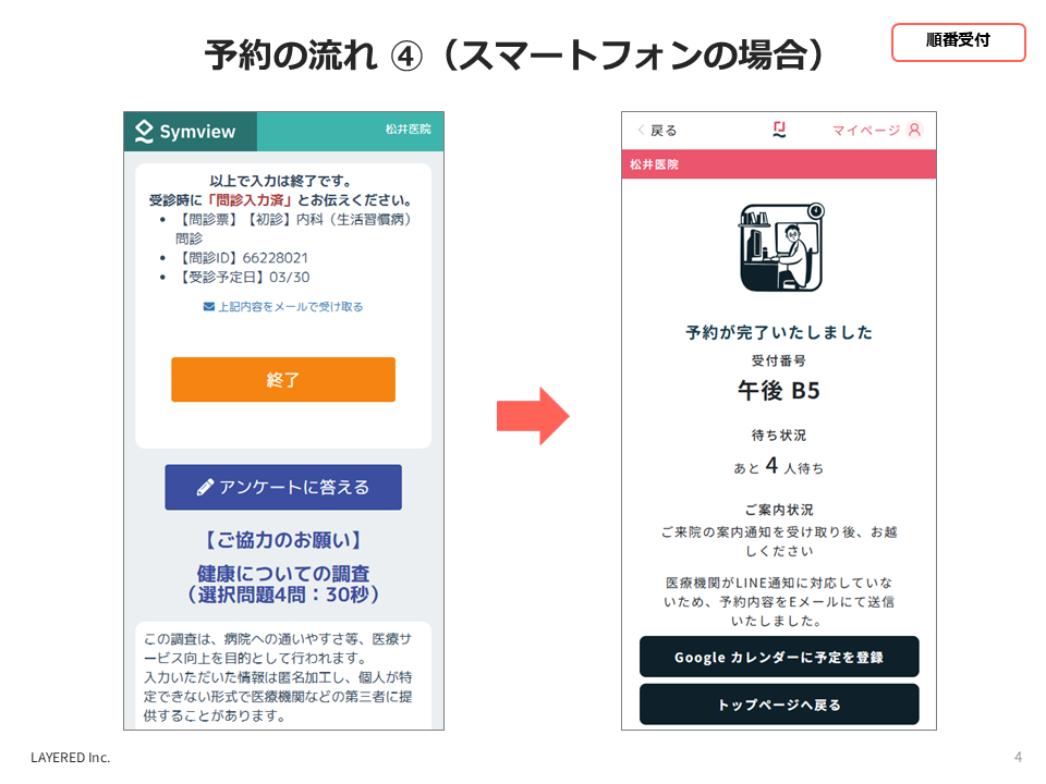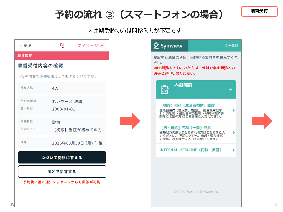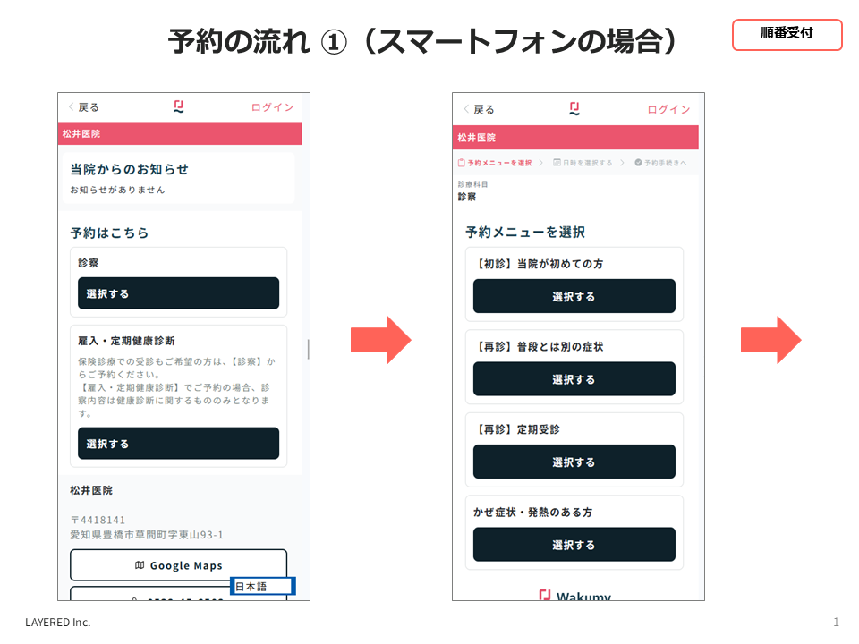 スマートフォンでの受付の流れを下記に掲載しましたのでご参照ください。
