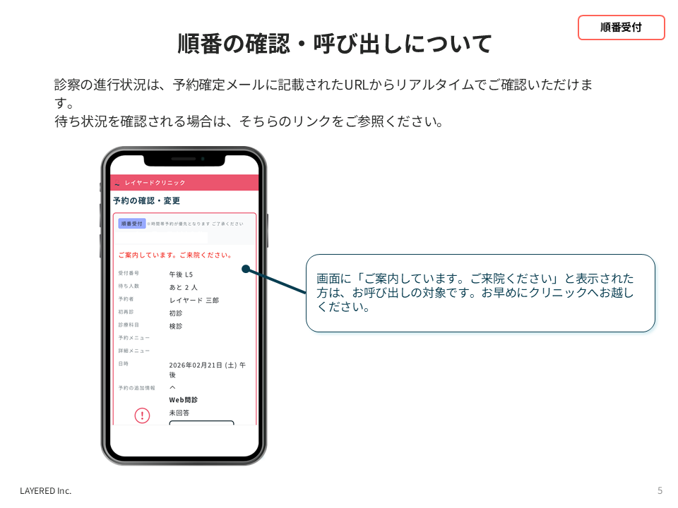 当院では、待ち時間の短縮と窓口での混雑緩和を図るため、WEBによる順番受付システムを導入しています。これまではWEB問診と連動していませんでしたが、システムの変更により、順番受付の後スムーズにWEB問診に移行できるようになりました。是非ご利用ください。